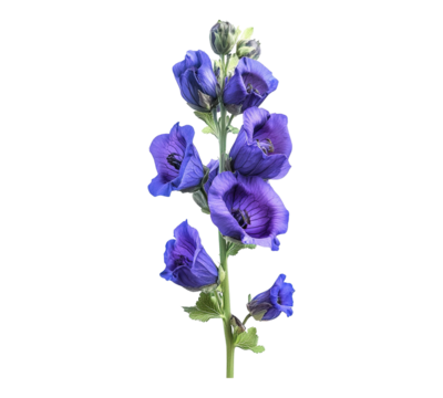 Purple iris flower blooming on its stem with transparent background, ideal for design projects
