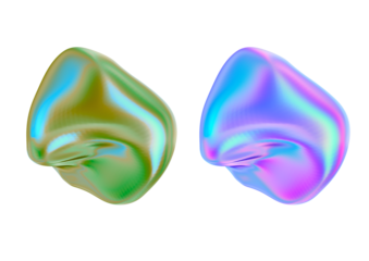 Two abstract iridescent blobs isolated on transparent background