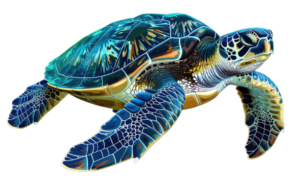 Vivid green iridescent ground beetle, carabus speciosus, displaying its reflective exoskeleton, transparent background