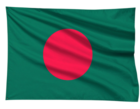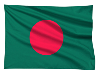 Waving Flag of Bangladesh with Red Circle, Side-Angled View, Isolated PNG.