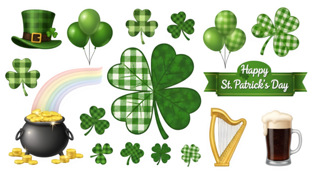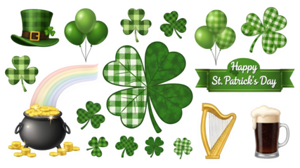 St patrick's day symbols isolated on transparent background