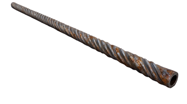 Rusty blue iron rod isolated on transparent background showcasing weathering and age, highlighting unique textures and colors in a low resolution setting