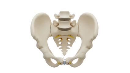 Human pelvis bone isolated on transparent background, anatomical skeletal structure for medical study and educational purposes