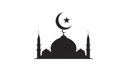 Silhouette of a mosque with crescent moon and star icon, islamic architecture symbol isolated on transparent background