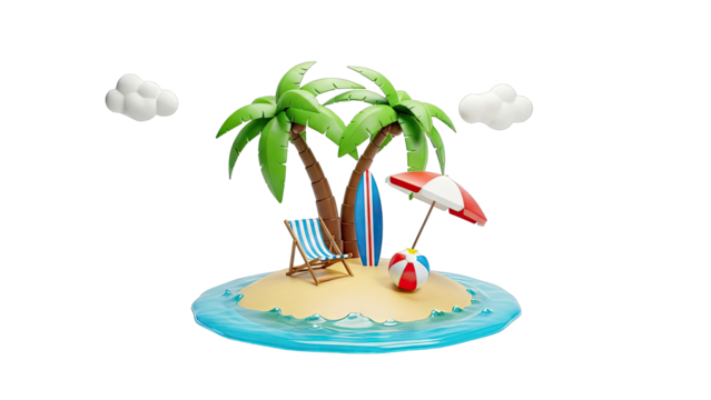 Isolated tropical island illustration with transparent background