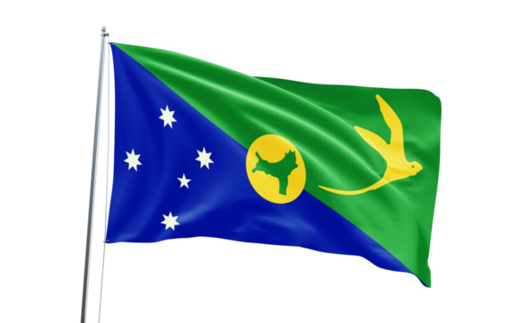 Cartoon tropical island with palm trees surrounded by stylized ocean waves, isolated on transparent background