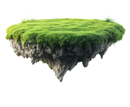 Floating green island above ground nature landscape isolated viewpoint serenity isolated on transparent background
