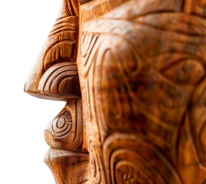 A wooden carved idol Maori Polynesian style isolated on transparent background, PNG with transparent background, side view