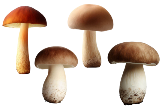 Funghi commestibili marroni e bianchi, isolati e trasparenti