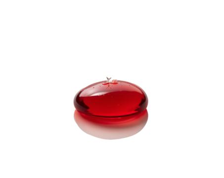 Isolated vibrant red fluid drop resting gently on a reflective surface, showcasing purity and scientific precision in a studio setting, evoking concepts of life and research