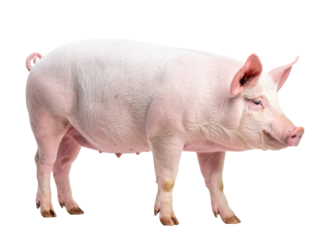 Side angle of a domestic pig Isolated on Transparent or White Background