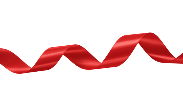A flowing wavy red satin ribbon with highlights isolated on transparent background