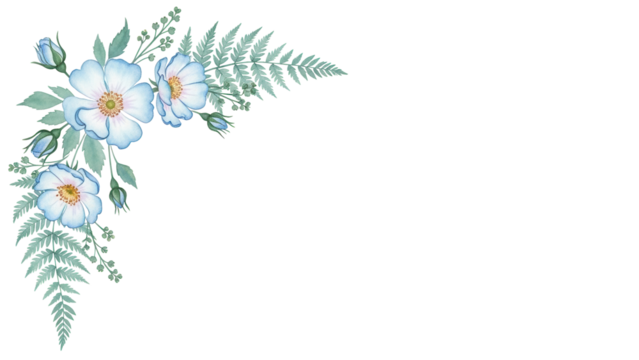 Delicate blue floral illustration with transparent background