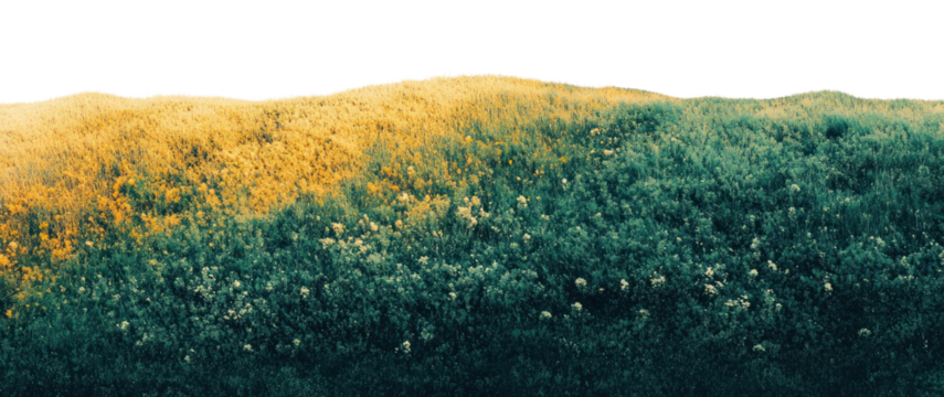 Set of rolling green hills in various landscapes, isolated on transparent cutout background