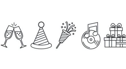 Celebration icons isolated on transparent background