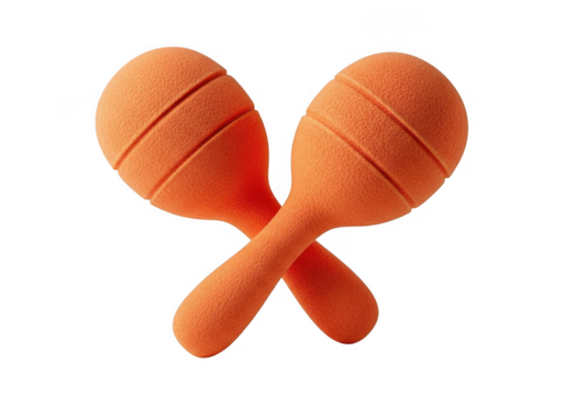 Two brightly painted wooden maracas crossed with colorful geometric and floral patterns isolated on a transparent background
