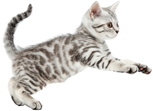 Adorable happy cat astronaut in space floating joyfully cute kitten 3d pet art fun paws tail on transparent background