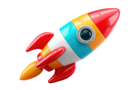 3d rocket launch toy blocks colorful cute spacecraft startup business icon illustration isolated on transparent background
