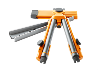 Orange surveyor tripod with metal ruler isolated on a transparent background