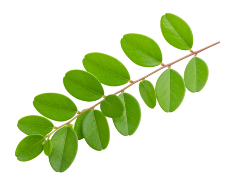Single Green Botanical Branch with Small Leaves, isolated on a transparent background PNG