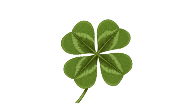 Four-leaf clover realistic 3D isolated on transparent background. generative ai