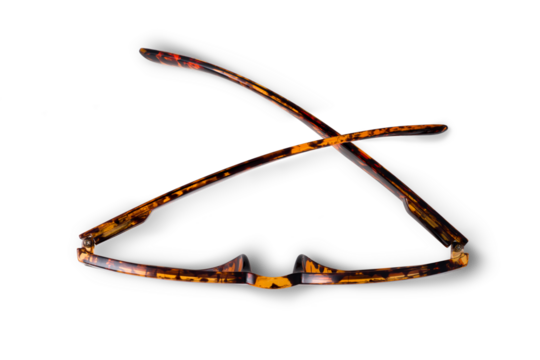 Top view brown styled women's glasses isolated on a transparent background, PNG. High resolution.
