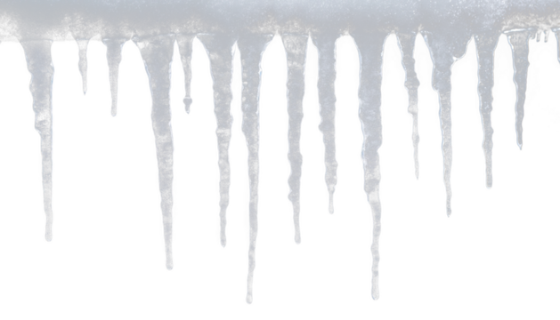 Melting ice PNG border with icicles, blue frost, snow and cold winter nature, isolated white background with Christmas crystal weather and roof