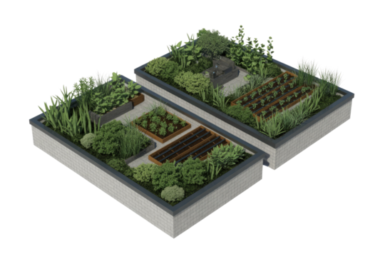 “Isometric 3D Rendered Family House with Garden Space, PNG”.