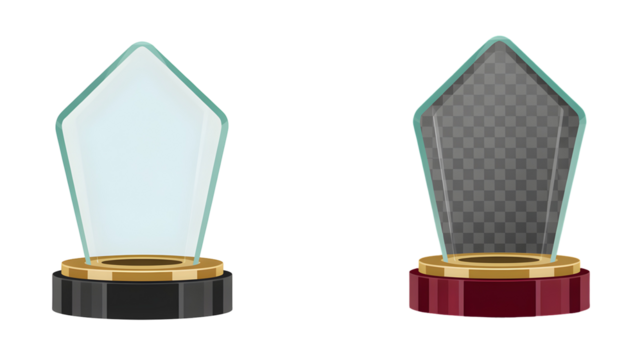 Vector Trophy Icons on Black and Red Bases with Gold Accents and Glass Elements