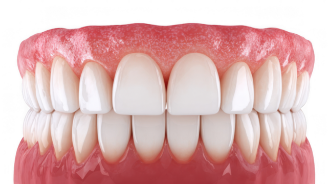 Displaying perfect white teeth alongside swollen gums highlighting gingivitis, emphasizing the importance of dental hygiene and the impact of oral health issues on well being