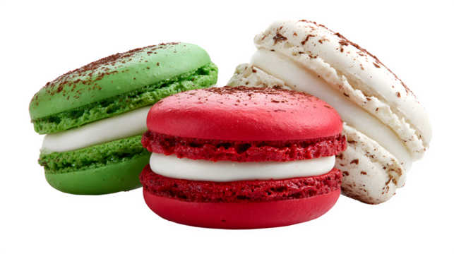 Italian Flag Macarons, isolated on transparent background