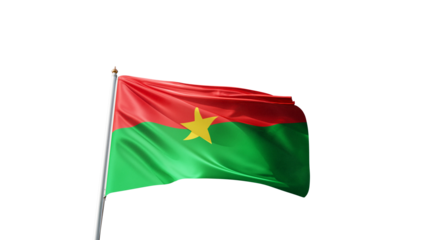 flag of burkina faso on a transparent background, waving in the wind, symbol of the burkina faso, african country, green and red with yellow star, tall flagpole, transparent png