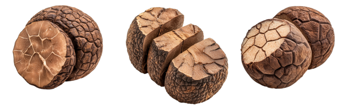 Set of summer truffles isolated on white transparent background, great for culinary and gourmet themes.