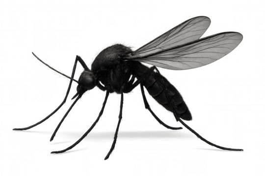 Realistic 3d rendering of a mosquito isolated on transparent background, showcasing its detailed wings and legs