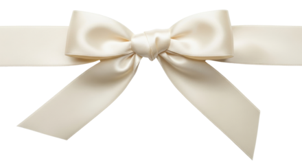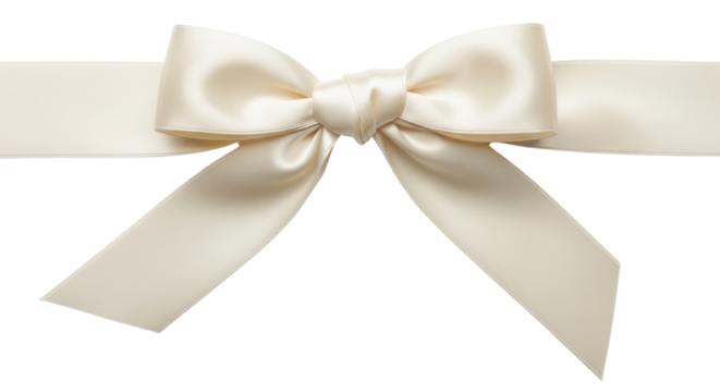 Elegant ivory ribbon bow with floral design isolated on transparent backdrop