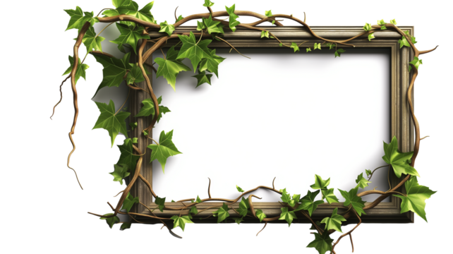 picture frame with summer climbing ivy with green foliage with shadow, isolated on transparent background