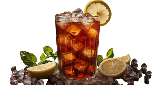 Refreshing Jack and Coke cocktail, a classic blend of whiskey and soda for casual gatherings, studio view, isolated on transparent background.
