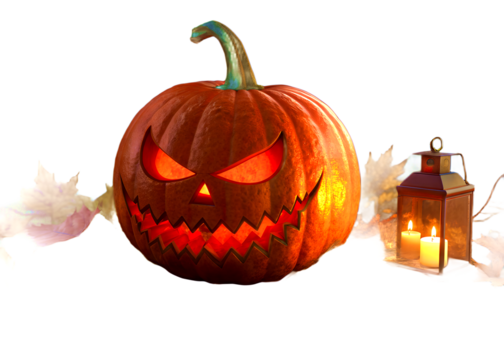 Spooky jack-o'-lantern pumpkin with transparent background for halloween