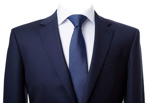 Collection of PNG. A business suit mock up dark blue isolated on a transparent background.