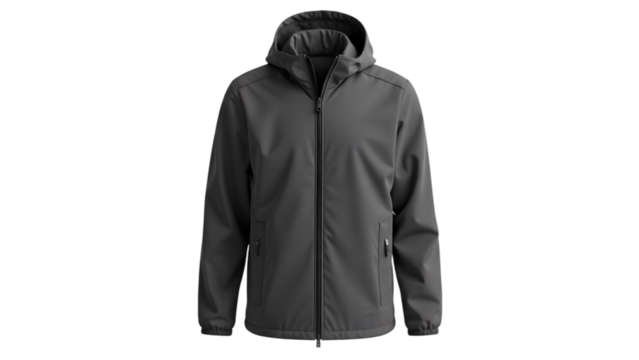 Dark blue hooded rain jacket mockup isolated on transparent background, perfect for showcasing your designs