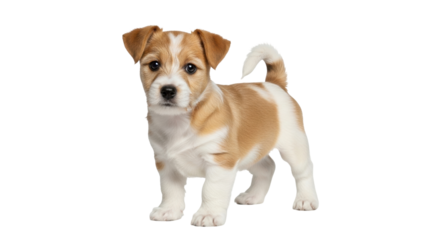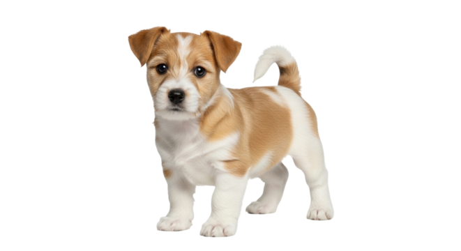 Isolated dog looking at camera stands in a studio shot for a cute pet photography project
