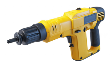 A yellow jackhammer isolated on transparent background is ready for demolition