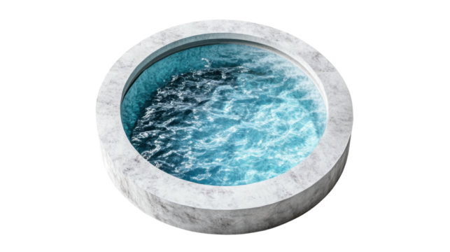 Modern round hot tub with swirling water on transparent background