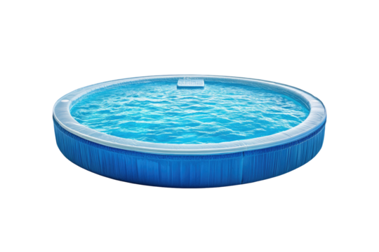 A white and blue hot tub with blue water filling the tub on a transparent background