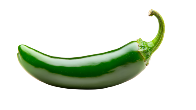 Fresh green Jalapeno pepper with curled stem, cut out transparent