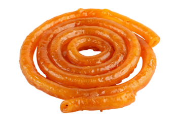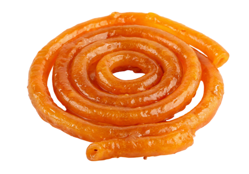 Indian jalebi sweet dessert spiral shape for Diwali Holi and festive celebrations isolated on transparent background