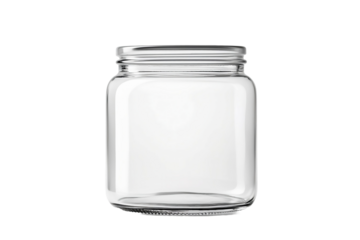 Clear empty glass jar with metal lid isolated on white background suitable for food storage labeling and craft projects