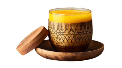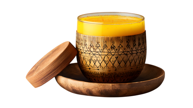 "Indonesian jamu turmeric drink in a bamboo cup, isolated on transparent background