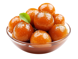 Gulab Jamun in Sweet Sugar Syrup Served in White Bowl Isolated on Transparent PNG