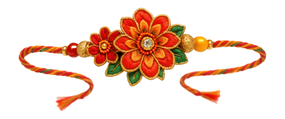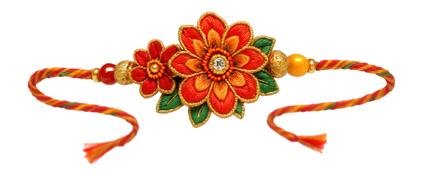 Colorful raksha bandhan bracelet with red, blue, and orange beads isolated on transparent background
